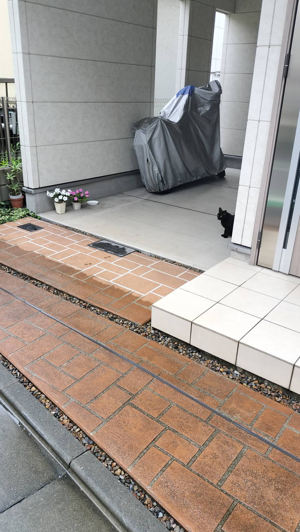 猫が横切ったので立ち止まると、何かを話しかけられた。 雨の文句を言われている。(気がする。) |