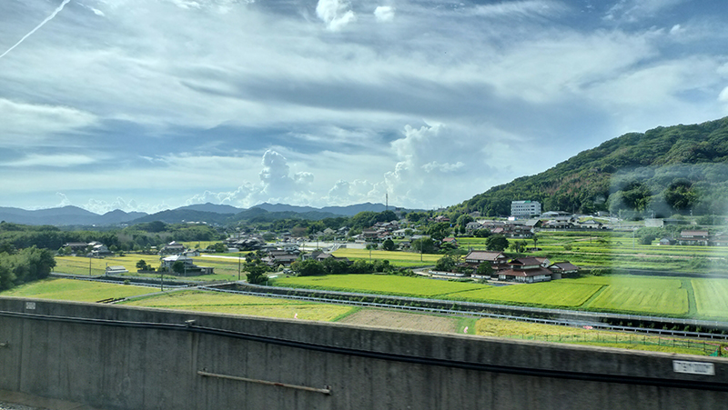 いいところ。盆地で東京より暑いが、それもまたいい。 稲の匂いが漂う。「そろそろじゃけ」(稲刈り)らしい。 |