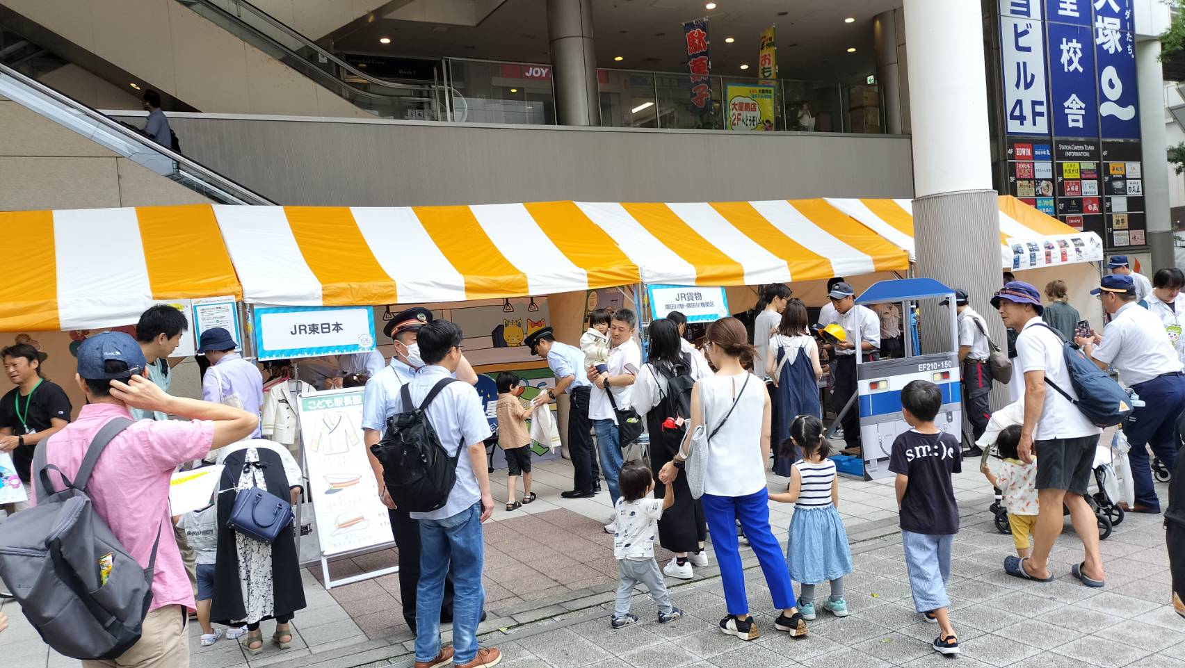 にぎやかだなと思ったなら鉄道各社がブースを出している。 一生懸命こどもたちと遊ぶ乗務員が良い。さあ三連休だ! |